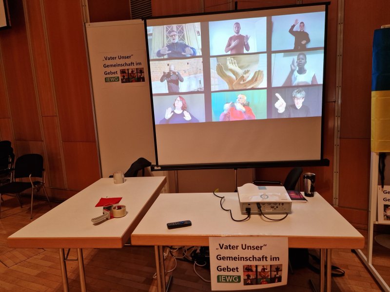 Die Begrüßung und die Einführung in das Thema Gemeinschaft übernahm Pfarrer Christian Schröder. Dann folgte das neue Gebärdenlied zum Thema Gemeinschaft, was Sabine Schlechter und Andrea Soremba mit allen gemeinsam gebärdeten.