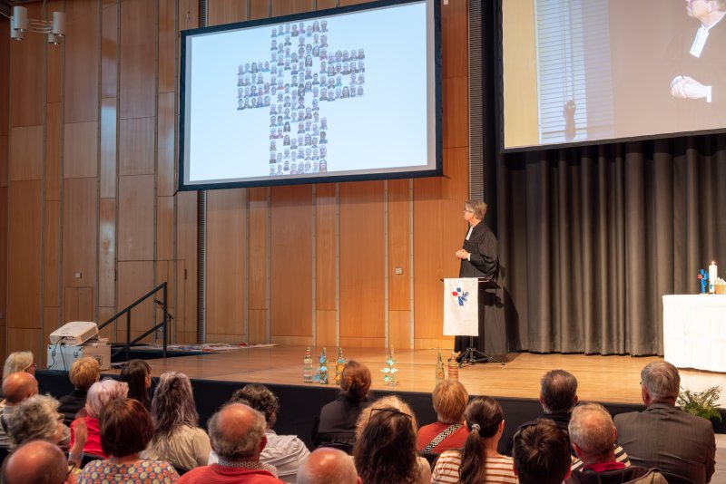 Danach überbrachte Pfarrer Ralf Radix Grüße von der Landeskirche als Referent für Seelsorge der EKvW. Weil er selber früher in der Gehörlosenseelsorge tätig war, konnte er das sogar in Gebärdensprache.