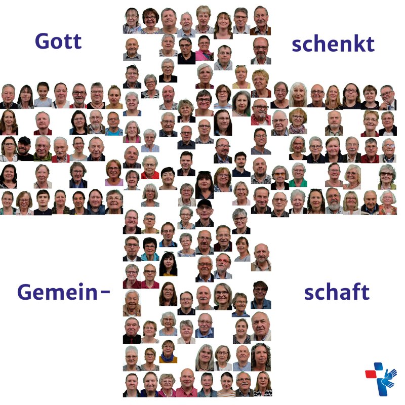 Fast 160 Besucher*innen hatten sich fotografieren lassen. Frerich Kleybold machte daraus eine Foto-Collage in Kreuzform.