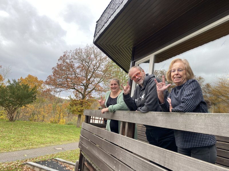 Auch in diesem Jahr bot die DAFEG einen Kurs zur deutschen Gebärdensprache an. So machten sich vom 6.-9. November einige der Gehörlosenseelsogerinnen aus der EkvW nach Eisennach auf, um dort direkt unterhalb der schönen Wartburg ihre Gebärdensprache zusammen mit anderen Gehörlosenseelsorgerinnen aus ganz Deutschland zu verbessern. Auf dem Foto Pfarrerin Katja Lueg, Pfarrerin Heike Kerwin und Pfarrer Hendrik Korthaus.