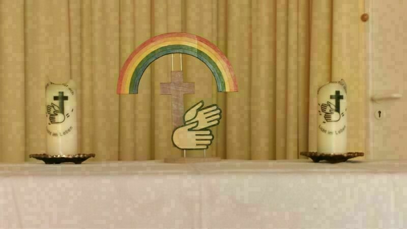 In diesem Jahr hatte die Gehörlosengemeinde Bad Oeynhausen in das Dietrich-Bonhoeffer-Haus eingeladen. Am Gottesdienst waren die Pfarrerinnen Vera Maaß, Heike Kerwin und Antje Eltzner-Silaschi beteiligt. Ein Gebärdenchor unter der Leitung von Sabine Schlechter trug Osterlieder vor, und auch die Gemeindesprecherinnen Britta Büker und Doris Wehmeier und der Vorsitzende des Vereins Günter Wehmeier wirkten im Gottesdienst mit. Im Mittelpunkt des Gottesdienstes stand ein Foto. Das Thema hieß: “Ostern heißt anders schauen”. Das Foto zeigte einen Höhleneingang aus zwei unterschiedlichen Standorten. Heike Kerwin hielt die Predigt und machte deutlich: Ostern heißt, dass wir aus dem Dunklen in das Helle schauen. Alles, was unser Leben dunkel macht, bringt Christus durch die Auferstehung ins Licht. Wir Christen schauen anders auf den Tod. Christus hat den Tod besiegt. Nach dem Gottesdienst kamen alle zu den schön gedeckten Tischen und konnten Kaffee und Kuchen genießen. Ostern heißt auch: Gemeinschaft feiern.