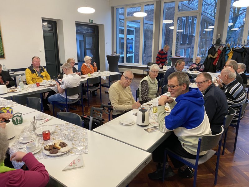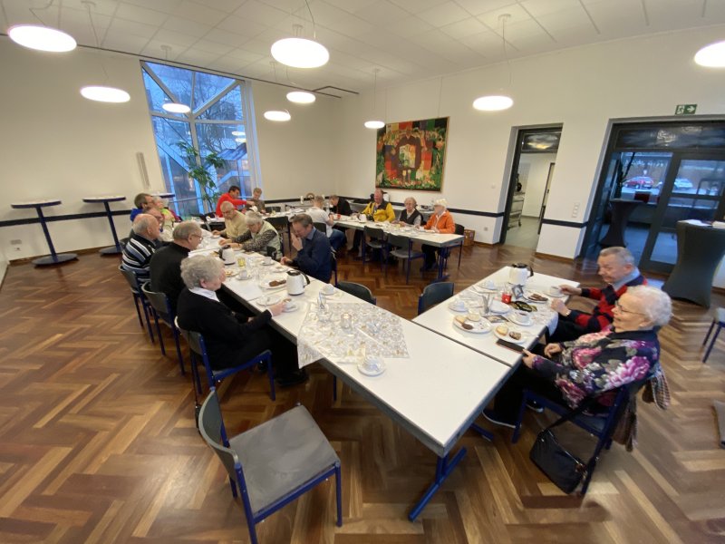 Für das anschließende Kaffeetrinken waren die Tische weihnachtlich geschmückt, und es gab Kaffee und leckeren Kuchen. Dank allen, die alles so liebevoll vorbereitet haben!