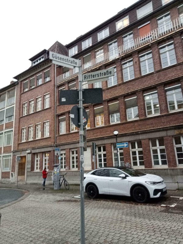 Dann biegt man rechts in die Ritterstraße und folgt ihr bis sie auf die Güsenstraße trifft.