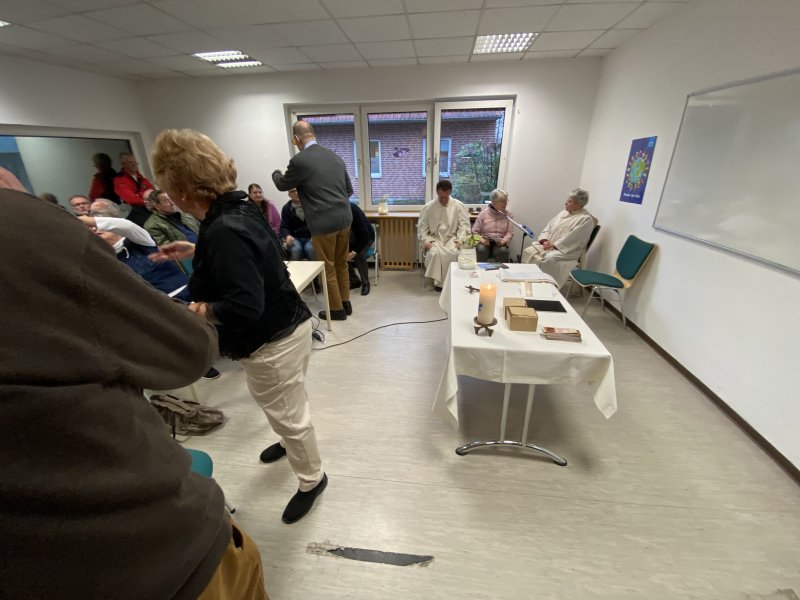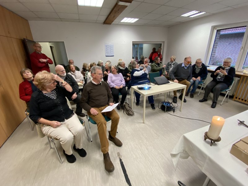 Einen besonderen ökumenischen Gottesdient durft die gehörlosengemeinde Recklinghausen am 12.01.2024 feiern. Die Eheleute Wormland aus Gladbeck wurden anläßlich ihrer Goldhochzeit erneut gesegnet. Pfarrer Wolgang Schmitz, pastoralreferentin Monika Prillwitz und dier evangelischen Gehörlosenseelsorger und Hendrik Korthaus feierten zuzsammen den Gottesdienst zur Jahreslosung 2024