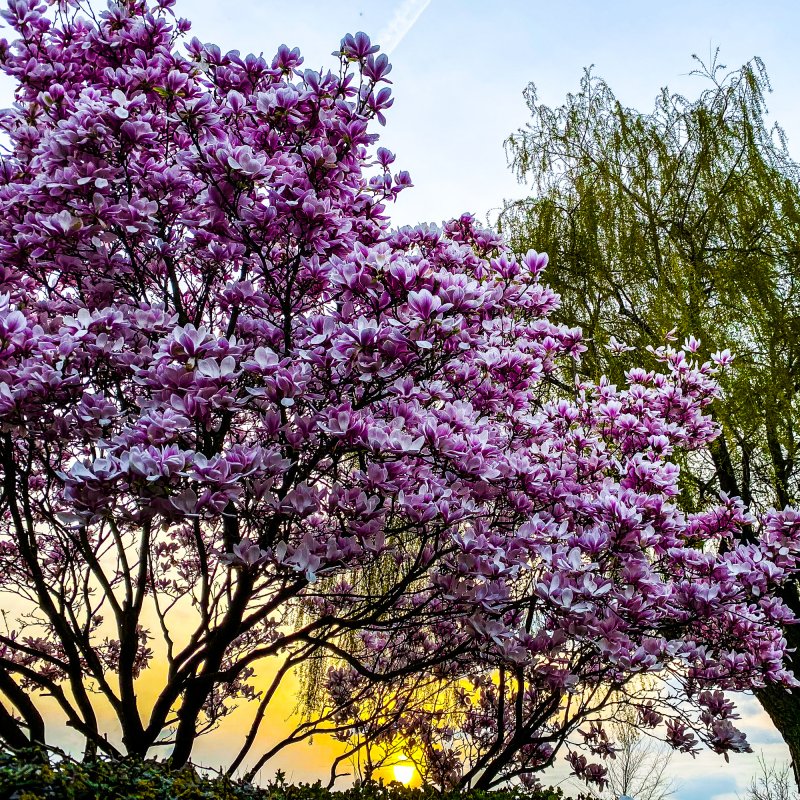 Zart blühend im zarten Pastell, eingefärbt von den letzten Sonnenstrahlen am Abend