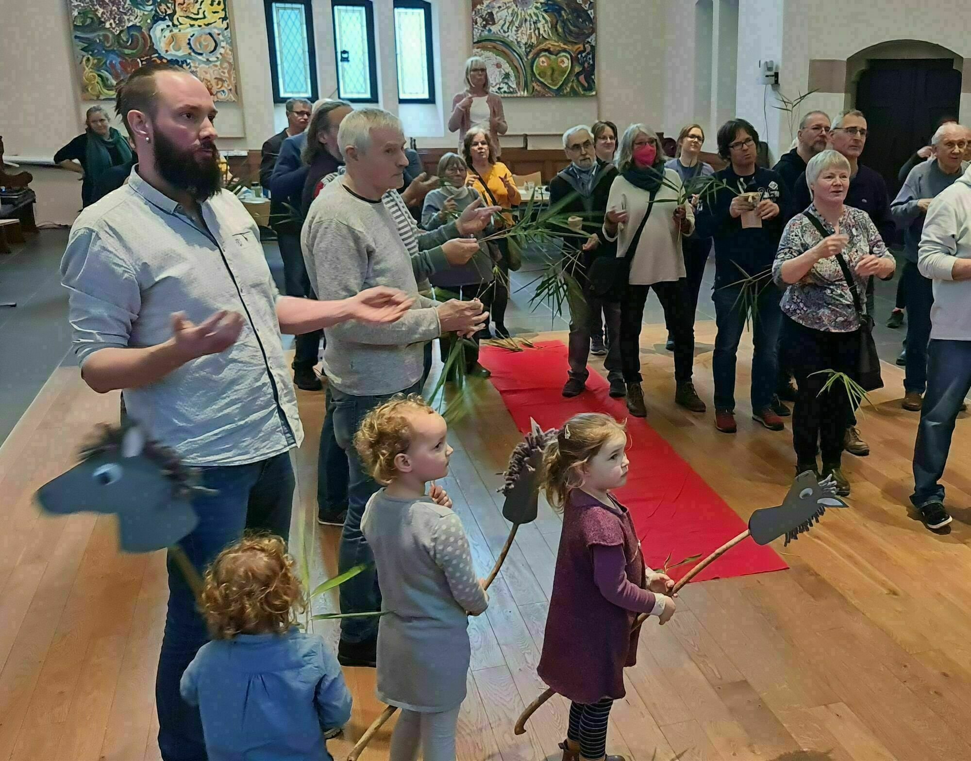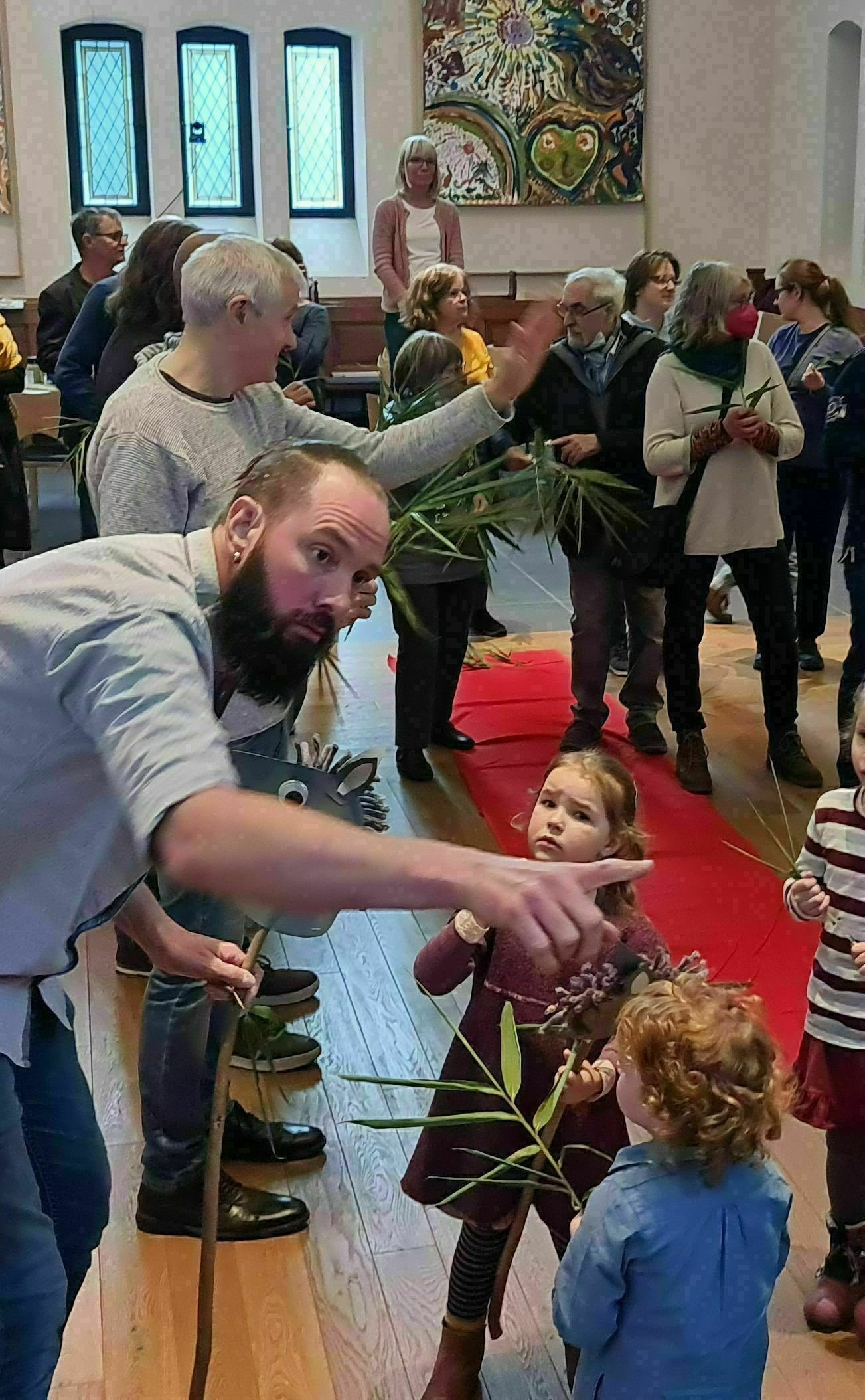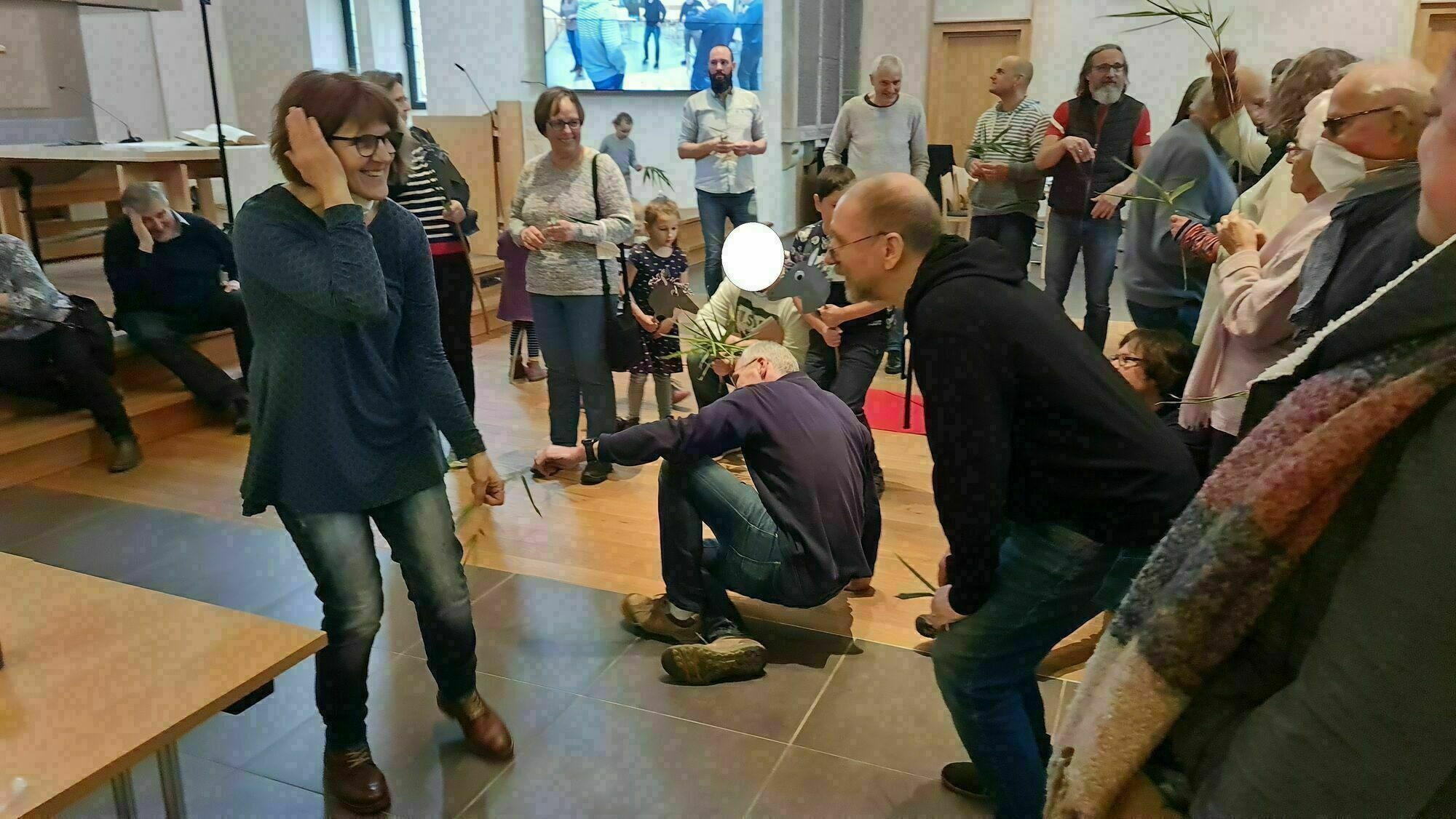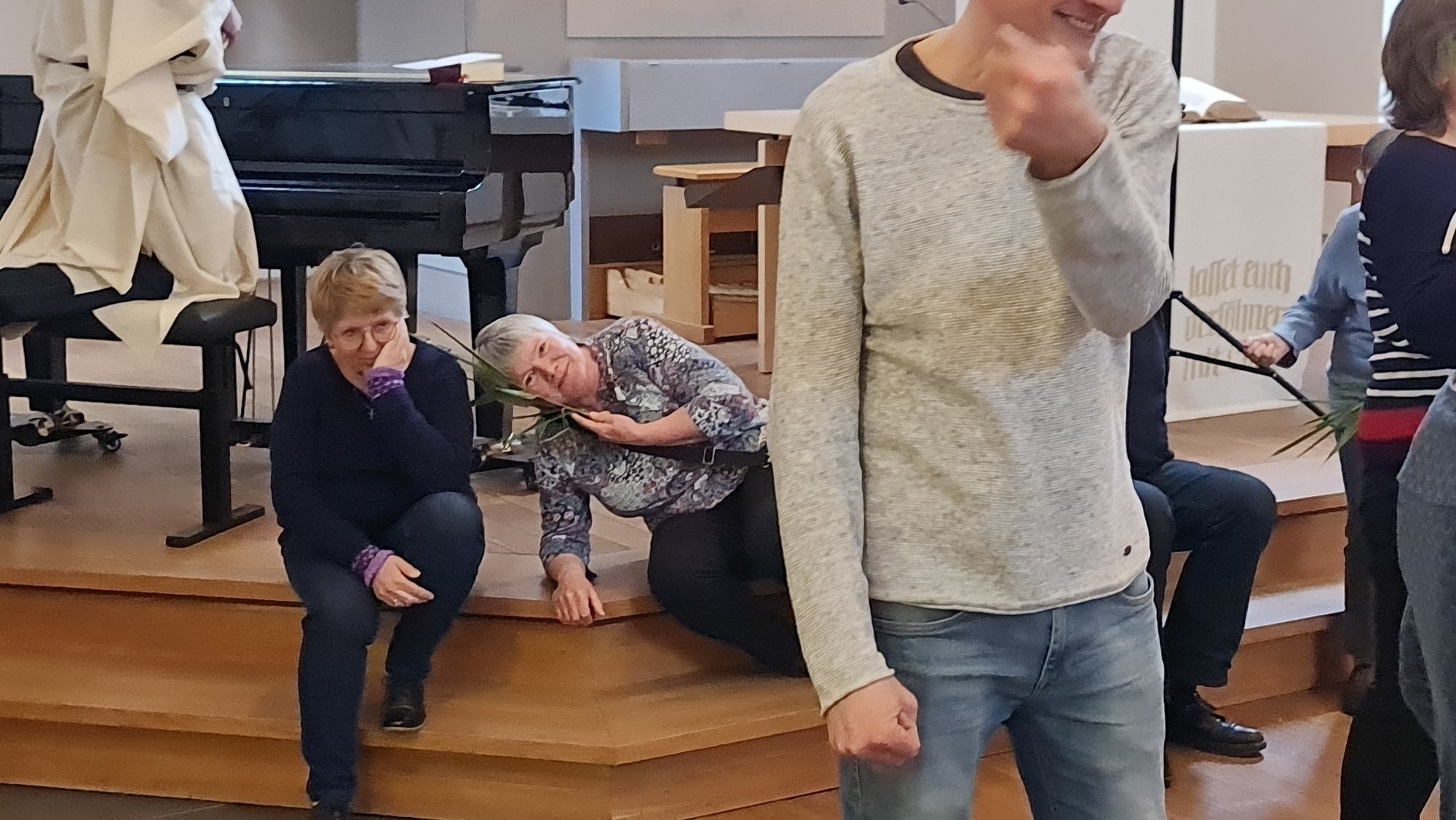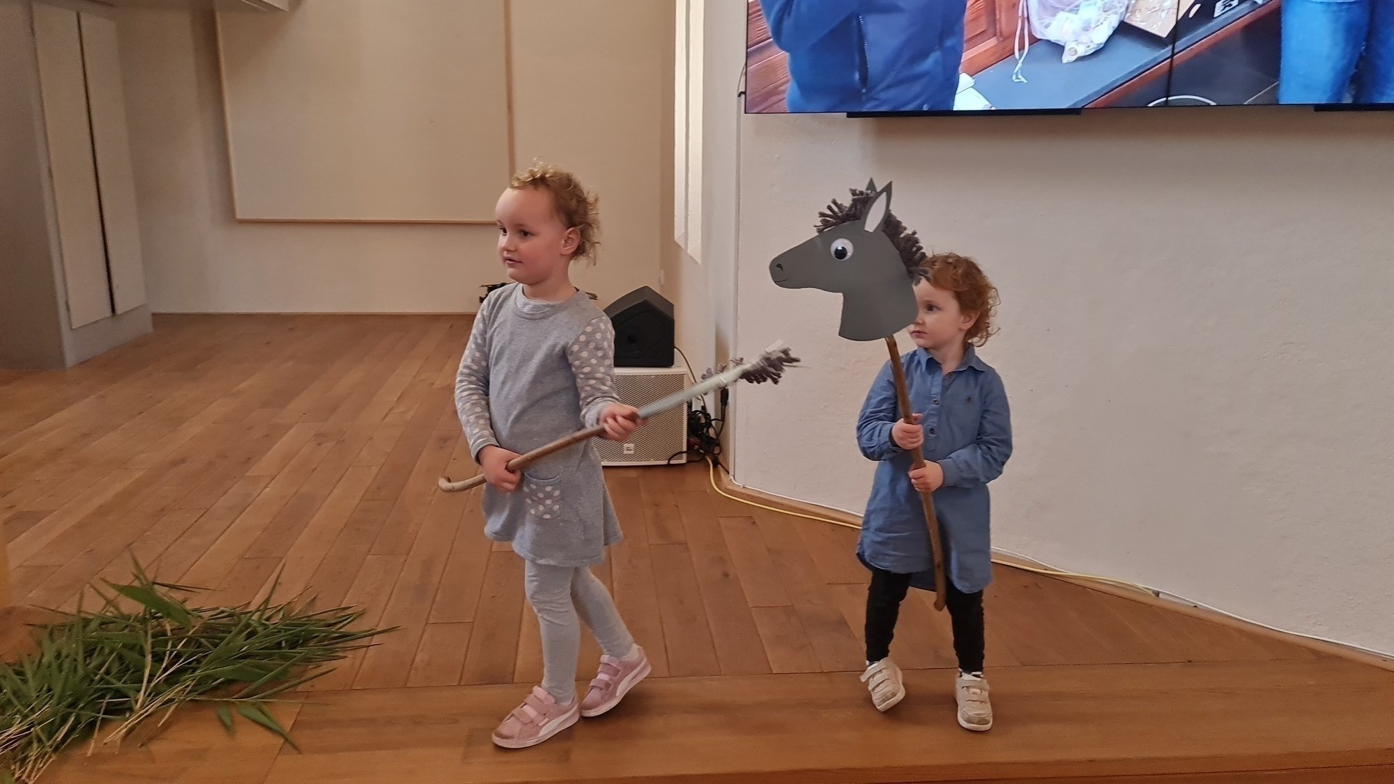 Danach haben wir alle zusammen nachgespielt, was Jesus von Palmsonntag (Einzug in Jerusalem) bis Ostersonntag (Auferstehung) erlebt hat.