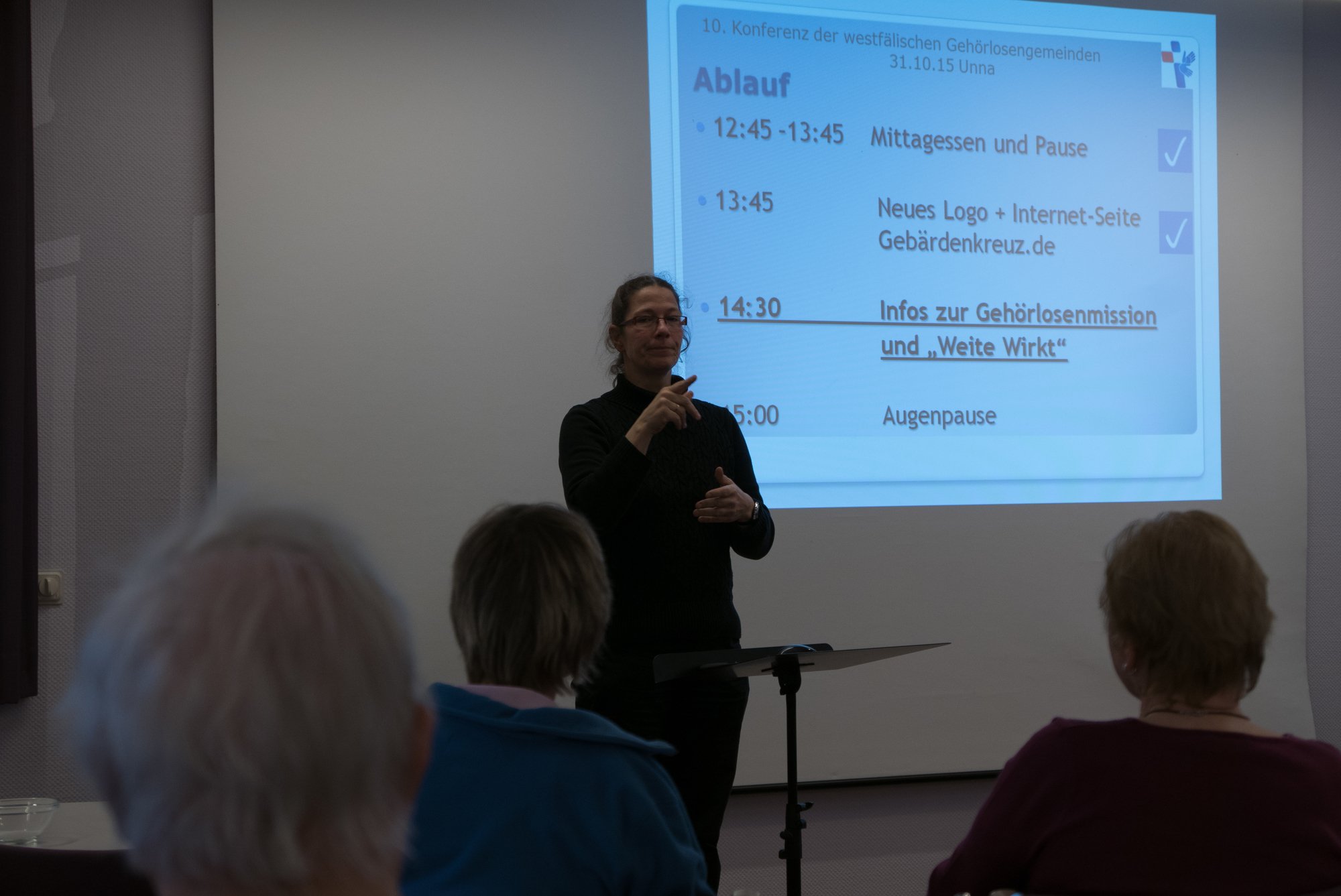 - Die Konferenz der westfälischen Gehörlosengemeinden trifft sich im Rhythmus von zwei Jahren seit 1995 an verschiedenen Orten in Westfalen.
